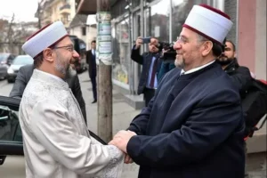 Ali Eshbar, i pari i xhamive të Turqisë, në takim me njeriun që punon e angazhohet pandërpre për ambicjet neoosmane, Naim Tërnavën…Ky ishte edhe për t’i përcjellë punime e xhamisë së Turqisë neoosmane në Prishtinë, të cilën po e financon krejtësisht politika neoosmane e Turqisë. Eshbar në një intervistë që e dha pas përfundimit të meremetimit komplet të Xhamisë së Namazgjasë në Tiranë, i kujtoj ushtarët e lavdishëm osmanë “që e sollën islamin”. Me këto mendime ai u zhvesh plotësisht dhe tregoj se Turqia me synime të qarta armiqësore e mohon secilën qëndresë antiturke e antiosmane shqiptare, sidomos qëndresën e kryeheroit të kombit, Gjergj Kastriotit.