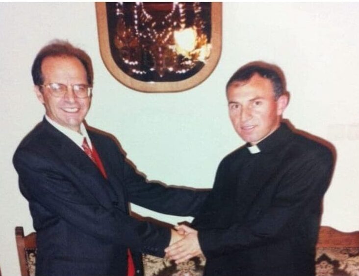 Në foto: Presidenti i ndjerë Ibrahim Rugova me Don Lush Sopin