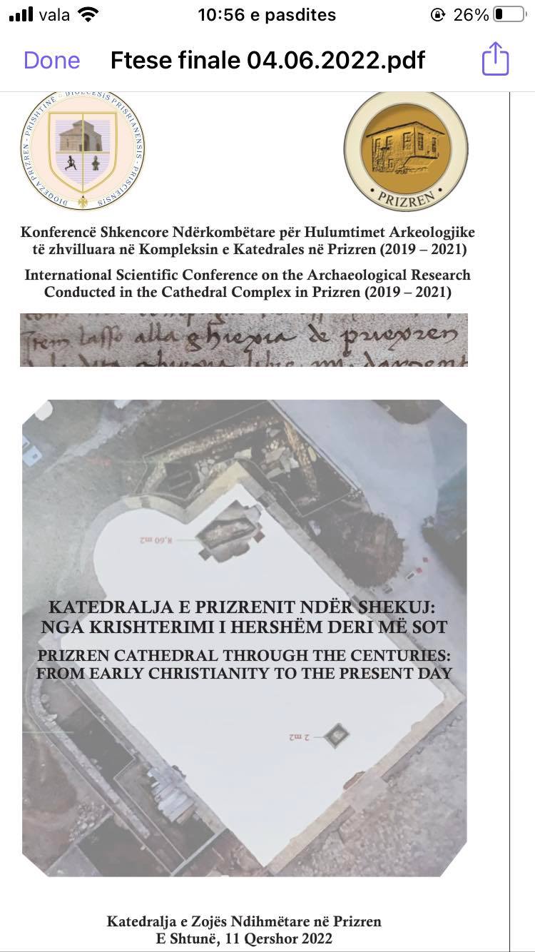 Të shtunën duke filluar nga ora 11, në Katedralen “Zonja Ndihmëtare” në Prizren do të mbahet Konferenca Shkencore me temen “Katedralja e Prizrenit ndër shekuj nga Krishterimi i hershem e deri me sot”  me një fokus të veqant në rezultatet e hulumtimeve arkeologjike të realizuara brenda kompleksit të kësaj katedrale gjat viteve 2019-2021.