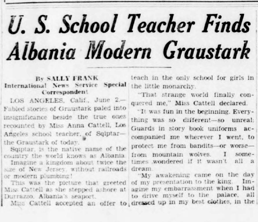 Los Anxhelos – Kaliforni, 2 qershor – Historitë e përrallave të Graustark-ut (referencë për librin “Graustark : The Story of a Love Behind a Throne”) u zbehën në të parëndësishme krahas atyre të vërteta të rrëfyera nga zonjusha Anna Cattell, mësuese nga Los Anxhelosi në shkollën shqiptare – Graustarku i sotëm.