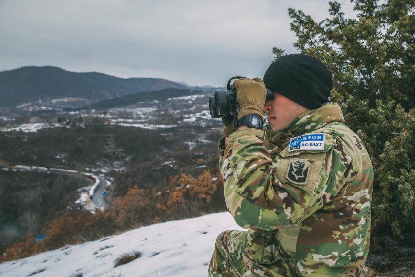 “Ushtarët e Ushtrisë Amerikane të Trupës Alfa, Skuadrilja e Parë 172 e Regjimentit Malor patrullojnë vijën kufitare administrative ndërmjet Kosovës dhe Serbisë afër fshatit Jarinje. Mbledhja e informacionit ndihmon komandantët e Komandës Rajonale Lindore të KFOR-it të marrin vendime dhe të planifikojnë misionet e ardhshme”, thuhet në njoftimin e KFOR-it.