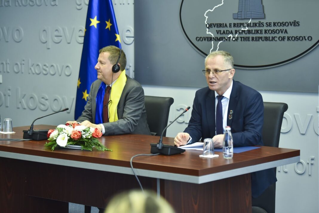 Prishtinë, 24 shkurt 2023 – Ambasadori i BE-së në Kosovë, Tomas Szunyog dhe Zëvendëskryeministri i parë i Kosovës, Besnik Bislimi, nënshkruan sot në Prishtinë një marrëveshje financimi që do t’i mundësojë BE-së t’ia transferojë Kosovës 75 milionë euro si ndihmë financiare të drejtpërdrejt dhe t’u ndihmojë qytetarëve dhe bizneseve të përballen me krizën energjetike.