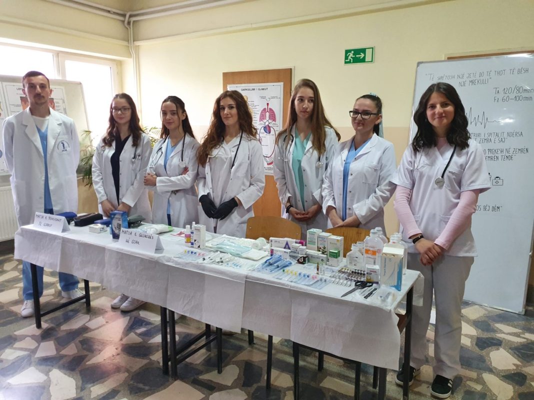 Nxënësja e drejtimit të infermierisë, Dorentina Qufaj, së bashku me kolegët e saj, në njërën nga tavolinat demonstronte mësimet e marra në shkollë dhe në Qendrën kryesore të Mjekësisë familjare në Deçan. Ajo ka treguar se si mundohet që mësimet teorike t’i zbatoj edhe në praktikë, duke ofruar shërbime shëndetësore për qytetarët.
