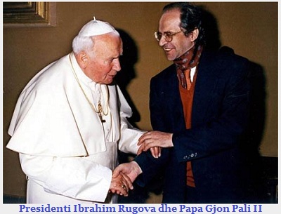Mbrëmë në Tiranë kryetari i Republikës së Kosovës dr. Ibrahim Rugova, i shoqëruar nga kryeministri i Republikës së Kosovës dr. Bujar Bukoshi dhe prof. Anton Çetta, patën një takim përshëndetës me Papa Gjon Pali II me rastin e vizitës së parë të Shenjtërisë së Tij, Papës në Shqipëri.