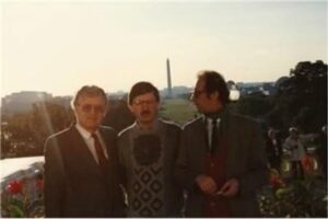 • Dr. Ibrahim Rugova, Frank Shkreli dhe Dr. Engjëll Sedaj në Kongresin e Shteteve të Bashkuara në Washington, Tetor 1989.  Ishte kjo vizita e parë dhe takimi im i parë me Presidentin e ardhëshëm të Republikës së Kosovës në Washington, por jo e fundit. (Foto ekskluzive e autorit nga vizita e parë e Dr. Ibrahim Rugovës në Washington.