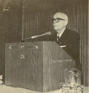 Dhimitër Berati duke folur në darkën e “Vatrës” në Hotelin “Americana” në Nju Jork, Nëntor, 969 — 50-vjet pas pjesëmarrjes së tij në Konferencën e Paqës në Paris, 1919.