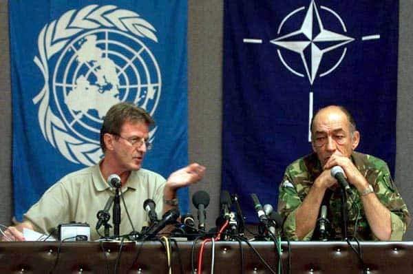 – Prishtinë, qershor 1999: kryeadministratori i UNMIK-ut, Bernard Kouchner dhe Gjenerali i NATO-s Majk Xhekson.