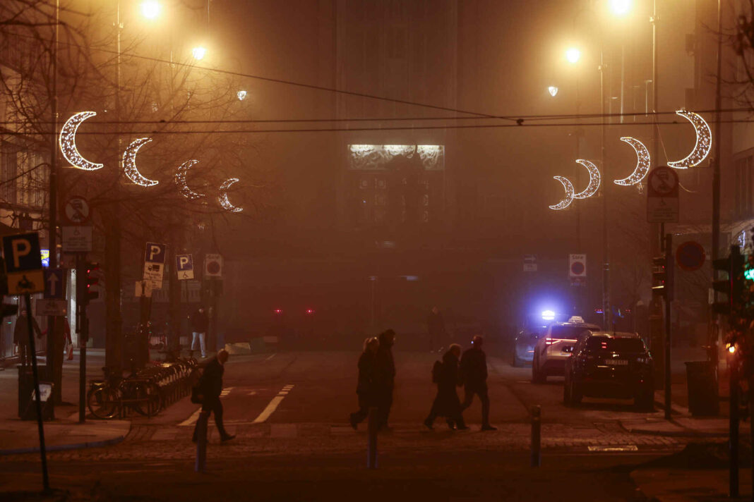 Komuna e Oslos i ka ndez dritat për ndriçimin për Ramazan në Borggården, pranë Këshillit Komunal të Oslos. Foto: Alf Simensen . Përpara këshillit të qytetit të Oslo, Ramazani u shënua dukshëm vitin e kaluar. Foto: Alf Simensen / NTB