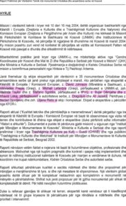 Sipas këtij dokumenti, më tutje thuhet se në periudhën pas luftës në Kosovë ndodhën dy procese paralele jo civilizuese, shkatërrimi i trashëgimisë kulturore krishtere dhe i vendbanimeve autentike të serbëve, malazezëve dhe kroatëve, të cilët kryesisht e kanë lëshuar Kosovën[6].