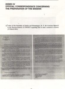 Në bazë të dokumentit nr. 06-5363/2003 të datës 25.08.2003 të lëshuar nga “Qendra Koordinuese e Republikës së Serbisë dhe Malit të Zi për Kosovë e Metohi”, në Graçanicë dhe të nënshkruar nga kryetari i saj, Nebojsha Ćović, drejtuar Përfaqësuesit Special të Sekretarit të Përgjithshëm të Kombeve të Bashkuara në Kosovë (UNMIK), Harry Halkery, mes tjerash, kërkohet: “që nënkryetari i Qendrës për Koordinim, prof. Branisllav Krstiq dhe Mr. Jovan Qirilov, Kryesues i Komitetit të UNESKO-së të kësaj qendre të vizitojnë Prishtinën në fillim të shtatorit 2003, për të filluar bashkëpunimin”. Nebojsha Çović në përfundim të letrës shkruante: “e shfrytëzoi këtë rast të ju dërgoi një kopje të publikimit tonë juve dhe z. Brayshaw, që është publikuar së fundi nga misioni ynë i UNESKO-s[2].