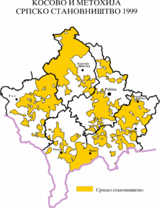 Fig. 3  dhe 4- Hartë, paraqitja e popullatës serbe në Kosovë në vitin 1999, dhe  popullata serbe në vitin 2002.