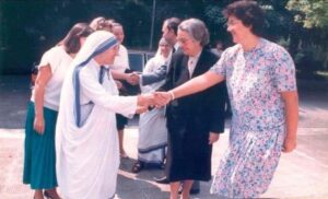 Pritja e ftohët e Nenë Terezës në Tiranë, gusht, 1989, kur më në fund u prit nga përfaqësuesit e një regjimi kriminal, frikacak, që për vite nuk i jepte vizë një murgeshe katolike të thjesht për të vizituar Nenën dhe motrën e saj, sa ishin gjallë. Turp kombëtar për ata atëherë dhe për apologjetët e sotëm që sot e kësaj dite mbrojnë dhe justifikojnë krimet e atij regjimi sllavo-aziatik që për një gjysëm shekulli ndau – për jetë dhe në vdekje — familjet shqiptare – si familjen e Nenë Terezës! Si shumë e shumë familje shqiptare, fati i Nenë Terezës megjithse me famë botërore, mund të thuhet se ishte ai që siç është shprehur dikur edhe Imzot Pjetër Bogdani: “Fati i im është fati i popullit tim”.