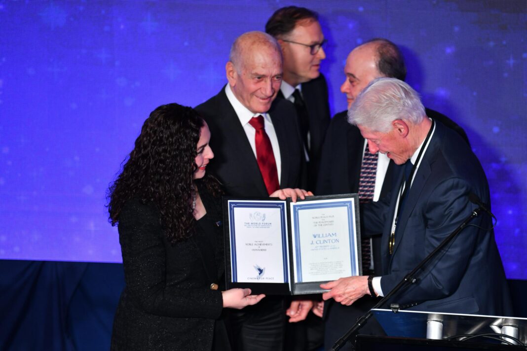 Presidentja e Republikës së Kosovës, Vjosa Osmani mbrëmë në Berlin, ka lexuar një ‘Laudatio’ për Presidentin Bill Clinton, i cili u nderua me çmimin “Paqebërësi i Shekullit” nga “World Forum”.