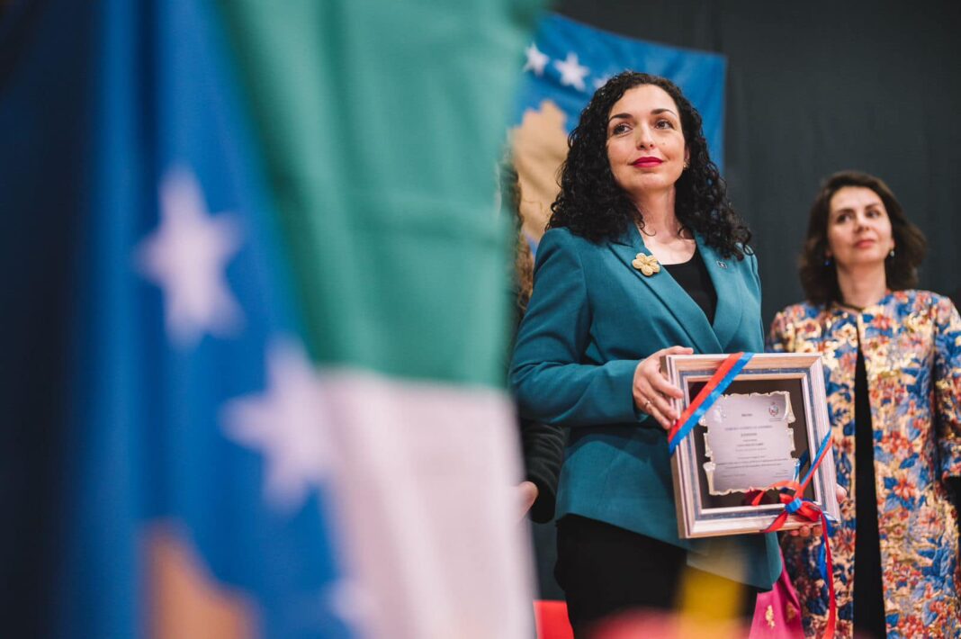 Presidentja Osmani e pranoi çmimin “Gjergj Kastrioti – Skënderbeu” dhe mori pjesë në inaugurimin e sheshit “Kosova”