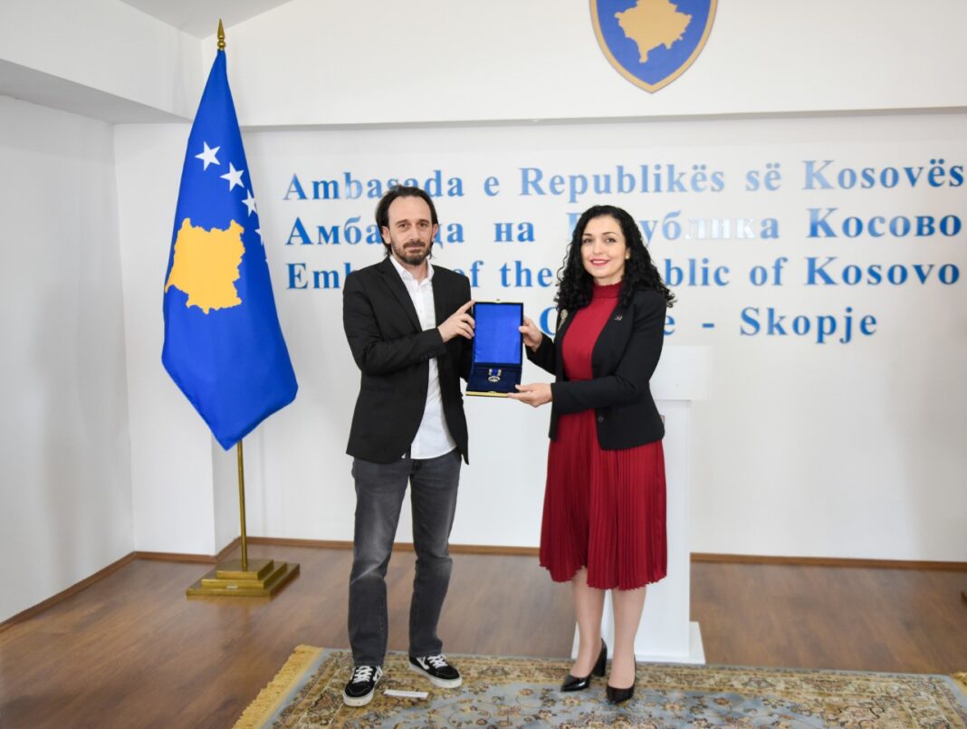 Presidentja e Republikës së Kosovës, Vjosa Osmani Sadriu, ka dekoruar sot post mortem me Urdhrin “Hasan Prishtina”, ideologun, politikanin, filozofin dhe liderin Arbën Xhaferi, në një ceremoni të organizuar në Ambasadën e Kosovës në Shkup, ku të pranishëm ishin edhe disa nga pjesëtarët e familjes së tij.