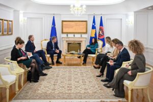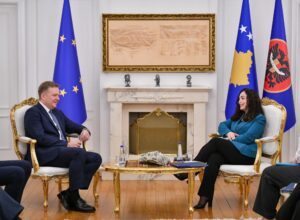 Presidentja e Republikës së Kosovës, Vjosa Osmani, priti sot në takim Përfaqësuesin e Posaçëm të BE-së për Dialogun Kosovë-Serbi, Peter Sørensen, me të cilin diskutoi zhvillimet politike në vend, dialogun me Serbinë dhe perspektivën evropiane të Kosovës.