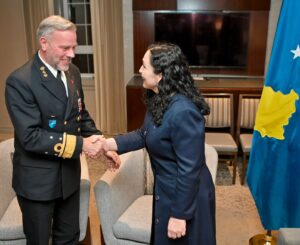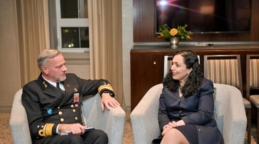 Në takim me Admiralin Bauer, Presidentja Osmani shprehu mirënjohjen e thellë për rolin e NATO-s në rrugëtimin e Kosovës drejt lirisë dhe përkushtimin e vazhdueshëm për paqen dhe stabilitetin në rajonin tonë.