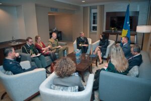 Presidentja e Republikës së Kosovës, Vjosa Osmani, e cila po e përfaqëson Kosovën në Forumin Ndërkombëtar të Sigurisë në Halifax ka zhvilluar një takim me Kryetarin e Komitetit Ushtarak të NATO-s, Admiralin Rob Bauer.