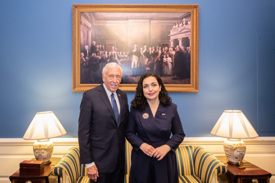 Presidentja e Republikës së Kosovës, Vjosa Osmani- Sadriu, është pritur gjatë ditës djeshme në takime nga lideri i shumicës parlamentare në Dhomën e Përfaqësuesve të Shteteve të Bashkuara të Amerikës, kongresisti Steny Hoyer, kongresisti Darrell Issa dhe bashkudhëheqësit e komisionit për Siguri dhe Bashkëpunim në Evropë, senatori Ben Cardin dhe kongresisti Steve Cohen.