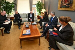 Presidentja e Republikës së Kosovës, Vjosa Osmani, gjatë qëndrimit në New York është takuar me Sekretarin për Marrëdhënie me Shtetet të Selisë së Shenjtë, Kryeipeshkvin Paul Gallagher.
