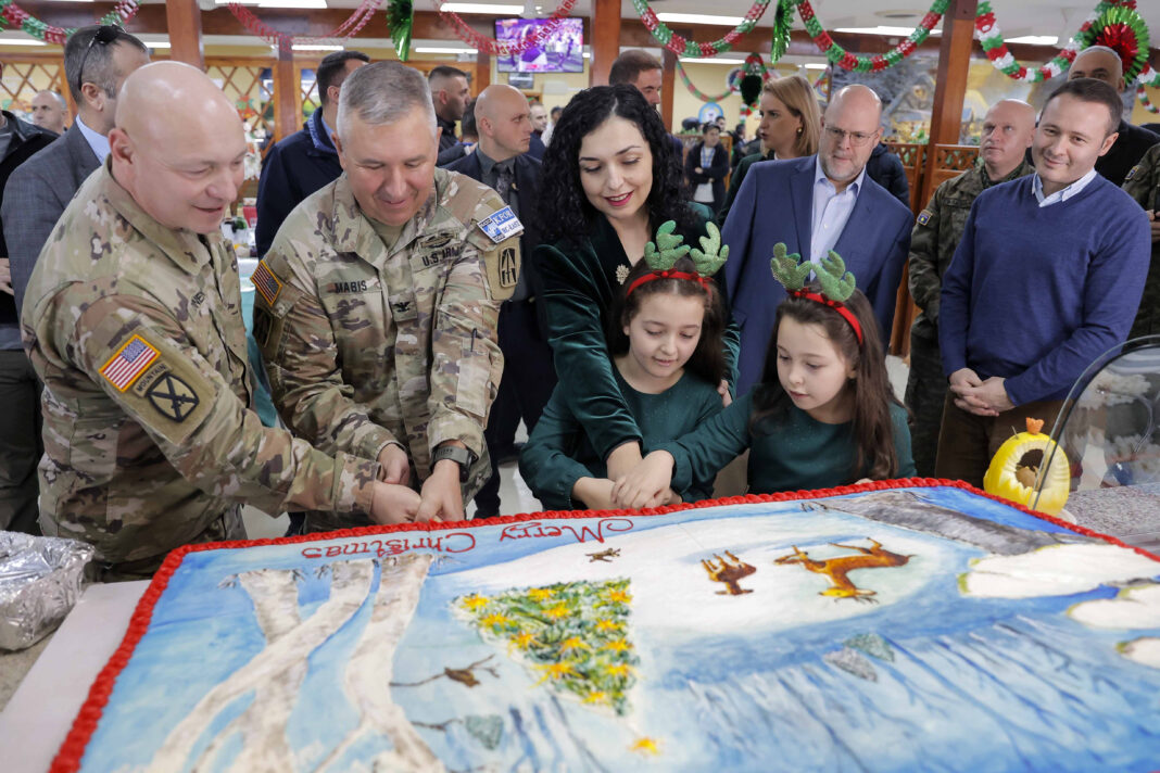 “E lumtur që u bashkohem ushtarëve amerikanë dhe ambasadorit amerikan në Kosovë Jeff Hovenier në kampin Bondsteel për drekën tradicionale të Krishtlindjes. Përcolla mirënjohjen tonë për shërbimin dhe mbështetjen e palëkundur të tyre ndaj vendit tonë”, shkroi Osmani në Twitter.