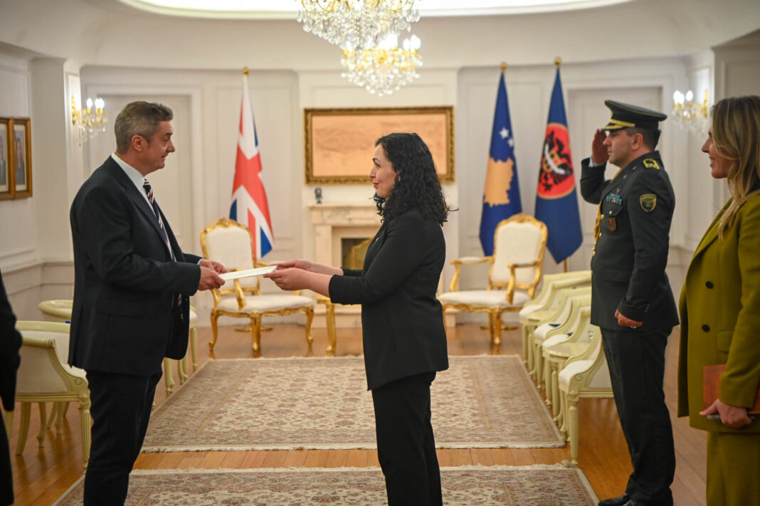 Presidentja Vjosa Osmani pranoi letrat kredenciale nga ambasadori i Mbretërisë së Bashkuar, Jonathan Hargreaves