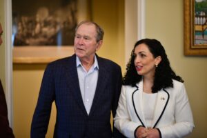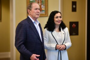 Presidentja e Republikës së Kosovës, Vjosa Osmani, e cila po qëndron për vizitë zyrtare në Teksas të SHBA-ve, ka zhvilluar një takim me presidentin e 43-të, të SHBA-ve, George W. Bush, të cilin e ka falënderuar në emër të popullit të Kosovës për angazhimin e tij të jashtëzakonshëm për lirinë dhe pavarësinë e Kosovës si dhe mbështetjen e tij të vazhdueshme për vendin tonë.