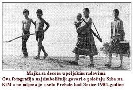 Pastaj, të rikujtojmë fotografinë e vitit 1984 të një serbeje nga Prekalla e komunës së Istogut, e cila me pushkë në krah e me fëmijë për dore shkonte t’i punonte arat. Pushkën e mbante, kinse, me i mbrojtë fëmijët e saj nga sulmues shqiptarë. Ajo fotografi, përveç se u shpall fotografia e vitit në ish-Jugosllavi, poashtu u publikua edhe nëpër shumë media evropiane. Para ca viteve doli e vërteta se e tëra ishte e inskenuar nga një grup gazetarësh të gazetës “Politika” të Beogradit, gjersa as pushka nuk ishte e saj, por ishte pushka e gjuetisë e një fqiu të saj.