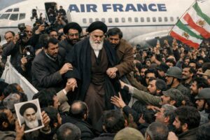 Kthimi i Khomeinit në Iran më 1 shkurt 1979. Ilustrim: ChatGPT
