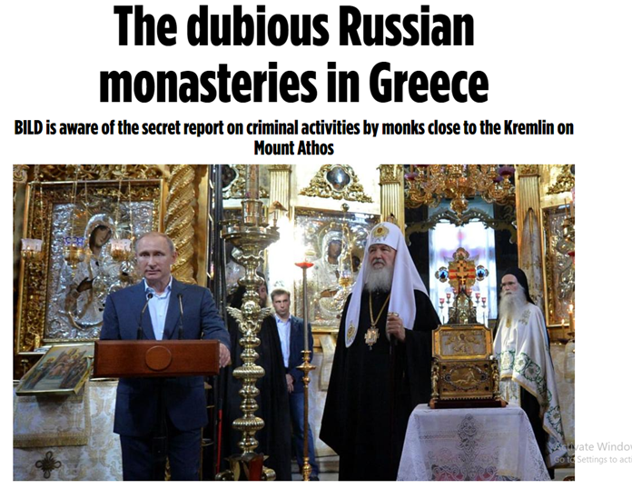 BILD njeh një raport sekret të detajuar në lidhje me aktivitetet kriminale të murgjve pranë Kremlinit në malin Athos – përveç pastrimit të parave, merret edhe me trafikimin e qenieve njerëzore, armëve dhe kontrabandën e njerëzve