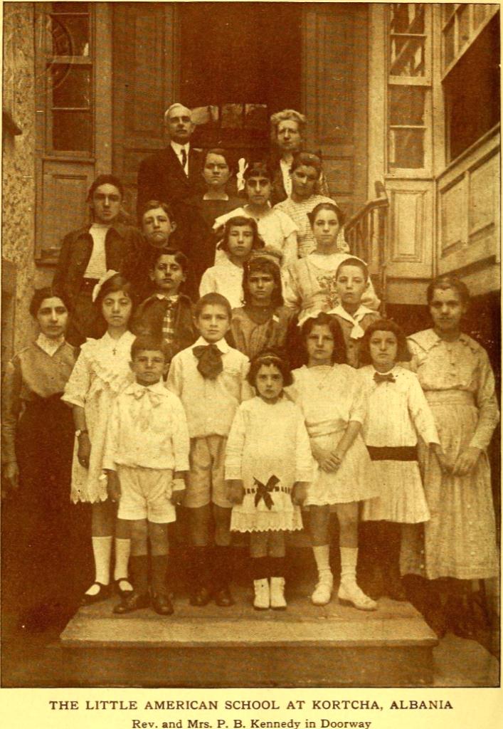 Secili prej nxënësve që ju shikon në foto meriton një prezantim (shihni ballinën). Përballë është e vogla Endokia Themistokli Gërmenji, babai i së cilës u ekzekutua nën urdhrat e gjeneralit Saraïl (Saraj) në Selanik gati dy vite më parë. As ajo dhe asnjëri prej nesh nuk mund ta kuptojë se si ndodhi kjo. Ai ishte një patriot i shkëlqyer shqiptar – misteri mund të zbardhet pasi paqja të jetë vendosur plotësisht në Ballkan. E dyta është Emelia, nëna e së cilës është anëtare e kishës protestante në Manastir, por babai i saj, në Amerikë, praktikisht e ka braktisur familjen. Më pas në rreshtin e parë janë Afërdita dhe Skënderi, të lindur në Rusi, por që u desh të iknin nga bolshevikët pranverën e kaluar, dhe Vasili dhe Elena, gjithashtu shqiptarë me origjinë ruse, të cilët u detyruan të iknin dhe erdhën në shtëpinë e vjetër të prindërve të tyre bashkë me ta. Do të kënaqeshe t’i dëgjoje të këndojnë rusisht me zërat e tyre të ëmbël. Edhe tani gjatë muajve të verës këta shqiptarë me origjinë ruse vijnë të ushtrohen në piano, të cilën Elena e luan mrekullisht mirë për një vajzë të vogël. Shega Petro Nini, në të djathtën tuaj ekstreme, pret të shkojë në Amerikë vitin e ardhshëm për të përfunduar arsimin e saj. Ajo është e krishterë dhe do të bëhej një mjeke e mirë nëse mund të stërvitej për këtë. Shoqata e krishterë e Përpjekjes (Christian Endeavor Society) e krijuar së fundmi e ka zgjedhur atë si sekretare. Babai i saj ishte një protestant në zemër, dhe deri në vdekjen e tij tragjike i kushtonte përpjekjet e tij për ngritjen e bashkëqytetarëve të tij shqiptarë, mendërisht dhe moralisht.