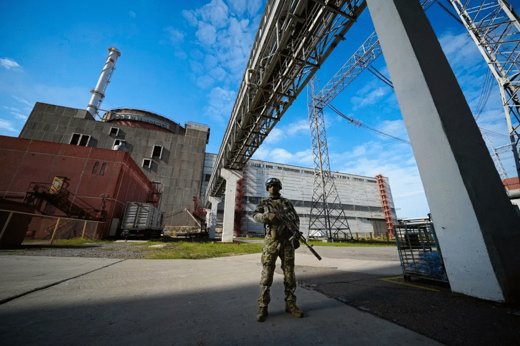 Një ushtar rus ruan centralin bërthamor në Zaporizjzja. Fotografia: AP