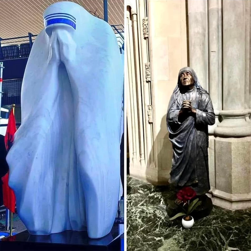 Kjo statujë turpi fatkeqsisht realizuar nga një “artist” shqipfolës, e paraqitet para botës shqiptare dhe mbarë njerëzimit se Ajo shenjtëreshë (Nënë Tereza) nuk është shiptare etnike, por arabe apo otomane, që s’kanë asnjë lidhje arkeologjike, historike me territorin, popullsinë, gjuhën, traditat dhe zakonet e lashta iliro-shqiptare…