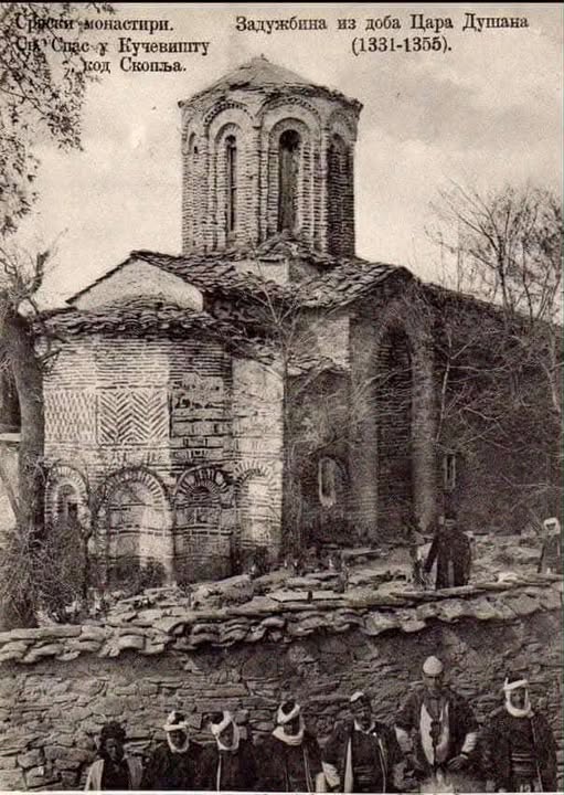 Një dëshmi e rrallë paraqet shqiptarë të krishterë para kishës mesjetare të Shën Spasit në Kuçevisht, afër Shkupit. Veshjet e tyre kombëtare – tirqit e bardhë dhe qylafët – tregojnë qartë identitetin shqiptar, ndërsa prania e tyre para një kishe ortodokse dëshmon për vazhdimësinë e jetës shqiptare të krishterë në këto troje.