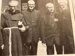 Nga e djathta, Imam Vehbi ismajli, Dom Jak Gardini, Dom Prekë Ndrevashaj dhe Padër Andre Nargaj – shembuj të tolerancës dhe bashkpunimit