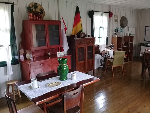 Interier me elemente nga vende të ndryshme, përfshirë Rusinë dhe Gjermaninë, në Carambeí në Jug të Brazilit, një qytet ku shumica e banorëve kanë prejardhje holandeze.
