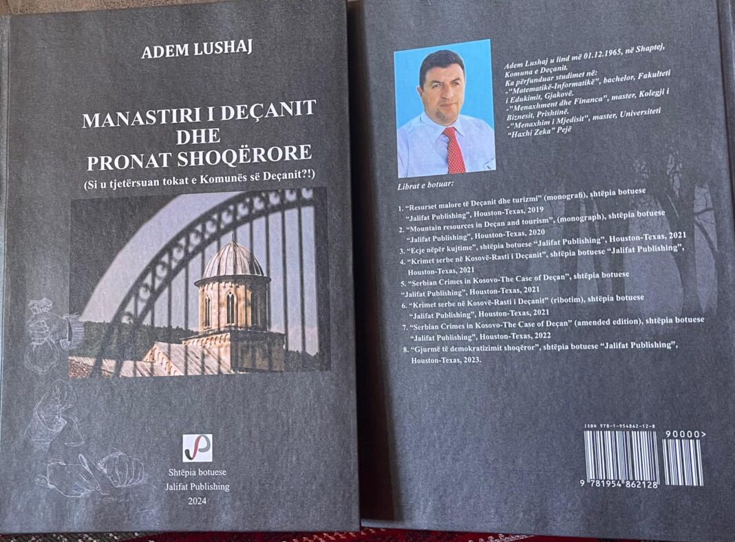 “Manastiri i Deçanit dhe Pronat Shoqërore” është libri i radhës së Adem Lushajt, i botuar nga Shtëpia botuese “Jalifat Publishing” me seli në Houston të Shteteve të Bashkuara të Amerikës