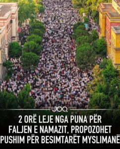 A e shihni, pra se si “të gjithë “muslimanët” në Shqipëri, mund t’i kenë dy orë pushim për “faljen e namazit të premteve”, njësoj si në vendet teokratike!