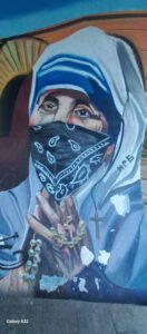 Sot ndodhemi këtu, para muralit të vandalizuar të Shën Terezës. Ky akt i shëmtuar është një fyerje jo vetëm ndaj figurës së saj, por edhe ndaj vlerave më të larta që ajo mishëroi – dashurinë, paqen dhe humanizmin.