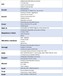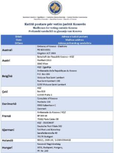 Lista e adresave të kutive postare janë në vegzën: Kutitë postare për votim jashtë Kosovës.