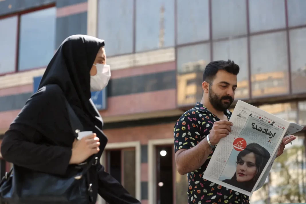 Një burrë lexon një gazetë me foton e Mahsa Aminit. Vdekja e saj ka provokuar reagime të forta dhe demonstrata në Iran. Foto: Wana News Agency / Reuters/NTB