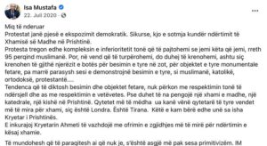 Nëse vërtetohet se këto bëhen për arsye të përkatësisë fetare të banorëve, kjo është ajo që nuk mund të pranohet prej askujt në Kosovë, se, ashtu do të vërtetohej se Islami Global që vepron ilegalisht ndër ne, dashka që ta varfëroj qëllimisht një komunitet i cili e praktikon krishterizmin në mënyrë që t’ia bëjë jetën e parehatshme e ta nxisë shpërnguljen e tij.