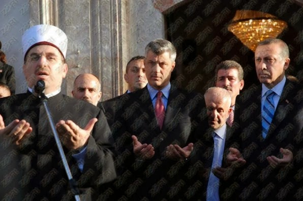 Në foto shihen Ish-kryeministri i Turqisë, Rexhep Taip Erdogan, (tashmë president turk) me Hashim Thaçin dhe Naim Tërnavën duke u lutur… Ku dhe per çka?