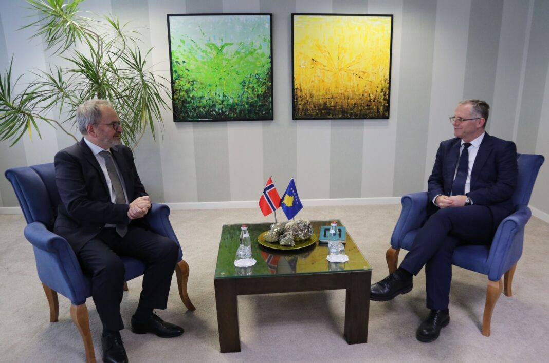 Zëvendëskryeministri i parë për Integrim Evropian, Zhvillim dhe Dialog i Republikës së Kosovës, Besnik Bislimi, priti në takim Përfaqësuesin Special të Norvegjisë për Ballkanin Perëndimor, Haakon Blankenborg.