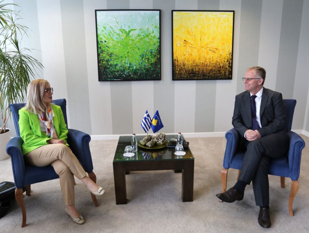 Zëvendëskryeministri i parë për Integrim Evropian, Zhvillim dhe Dialog i Republikës së Kosovës, Besnik Bislimi, priti në takim shefen e Zyrës Ndërlidhëse greke në Kosovë, Heleni Vakali.